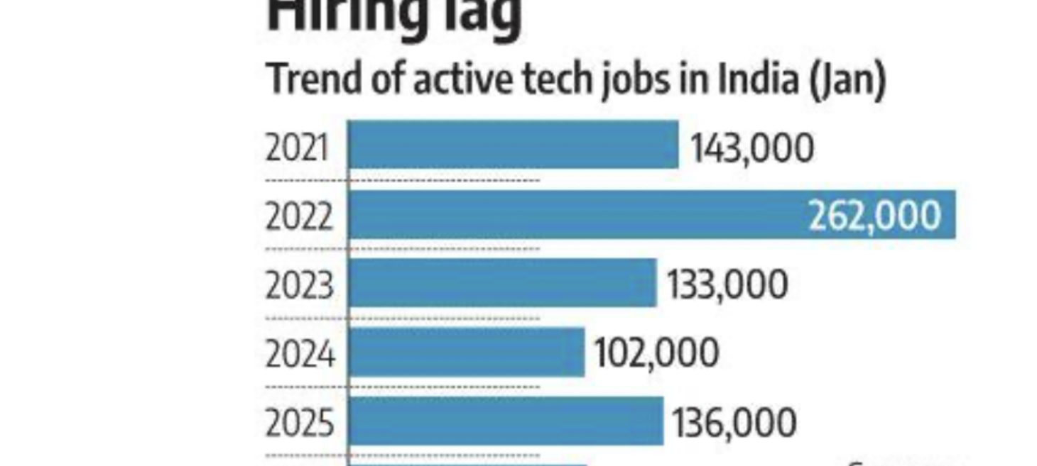 As of January 2026, the number of active job openings stands at 103,000, down 24 per cent from 136,000 in the same period last year. Though the 2026 number is slightly better than 102,000 in January 2024, but it is way below 262,000 openings four years ago, when the pandemic was getting over. The current active demand volume is down 60 per cent from the peak demand recorded in January 2022.